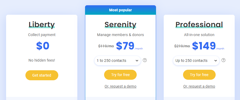 Example: the 79 USD Serenity offer lets you manage your association with a maximum of 250 contacts.