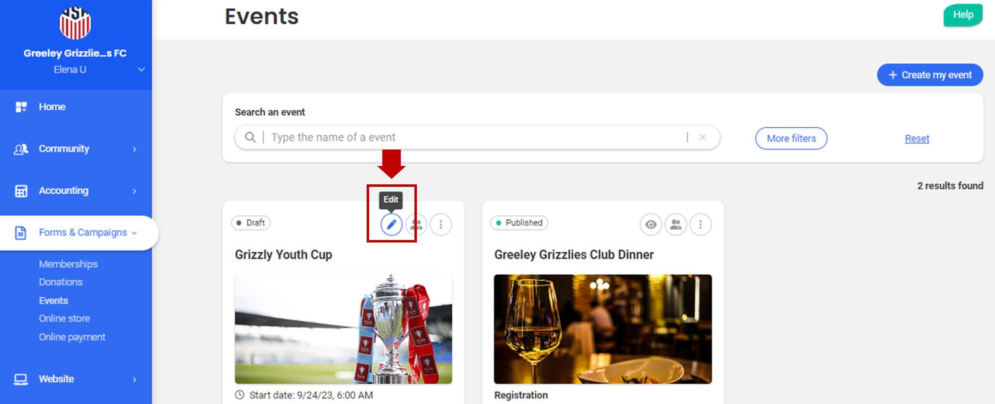 - Go to Forms & Campaigns, then to the desired form type (for example, Events)